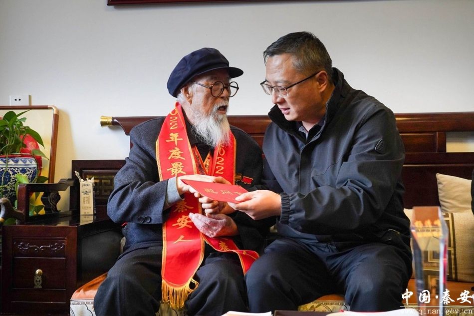 “最美秦安人”杨清峰是一位95岁的“老战士”“老英雄”,曾参加过解放兰州战役和抗美援朝战争,获个人三等功一次。在杨清峰家中,周济与他亲切交谈,详细了解其生活情况,倾听他讲述那段烽火连天的峥嵘岁月和初心故事,鼓励他继续发挥榜样引领作用,传承优良作风和红色基因,带动身边更多人传递正能量、践行真善美。同时,叮嘱相关部门要关心关爱“最美秦安人”群体,落实好优抚和关爱政策,为他们提供更多支持和保障。