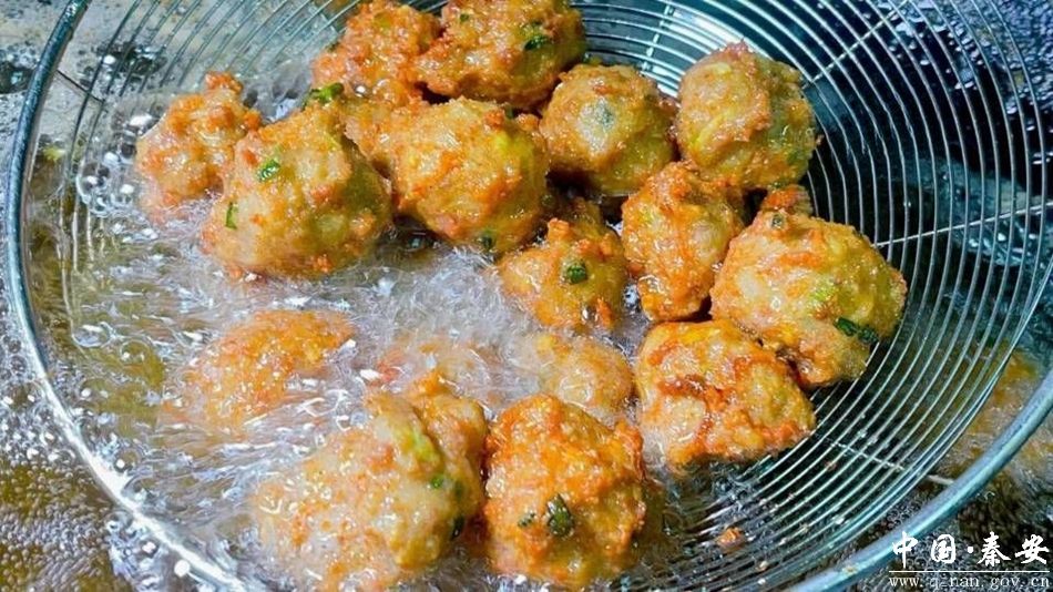 “滋啦——”伴随着热油翻滚的声响,金黄圆润的丸子在锅中渐渐鼓起,浓郁的肉香混着葱姜的鲜气,顺着厨房窗户漫溢到整个庭院。