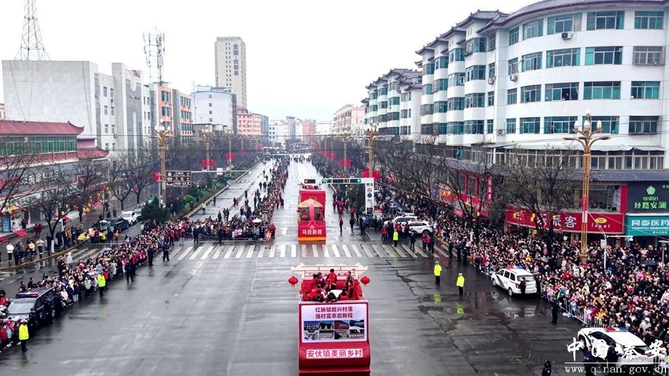 一路欢腾,一路盛景。18支社火队伍冒雨整装列队,循着既定次序踏歌而来。各镇队伍各有千秋,或融产业于民俗,或传文脉于表演,或展担当于身姿,将秦安的发展之美、文化之深、民生之暖,尽数融进这场社火盛宴。