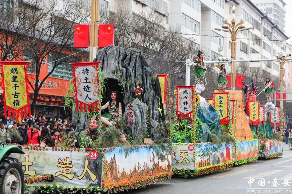 小雨淅沥难掩满城欢腾,气温偏低更显热情如火。当天,来自全县17个镇及社会团体的18支社火队伍、50多台彩车、1200多名演员参与展演。沿街两边人头攒动、目光灼灼,只为等候这场刻在成纪儿女血脉里的年度狂欢。金龙腾跃、雄狮劲舞,彩车徐徐穿行,神话人物与英雄好汉从典籍中走来,与万民同庆新春。
