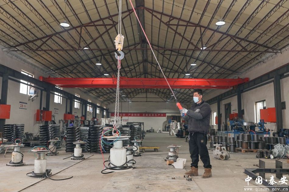(秦风农业机械有限公司生产车间工人现场作业进行零部件组装)