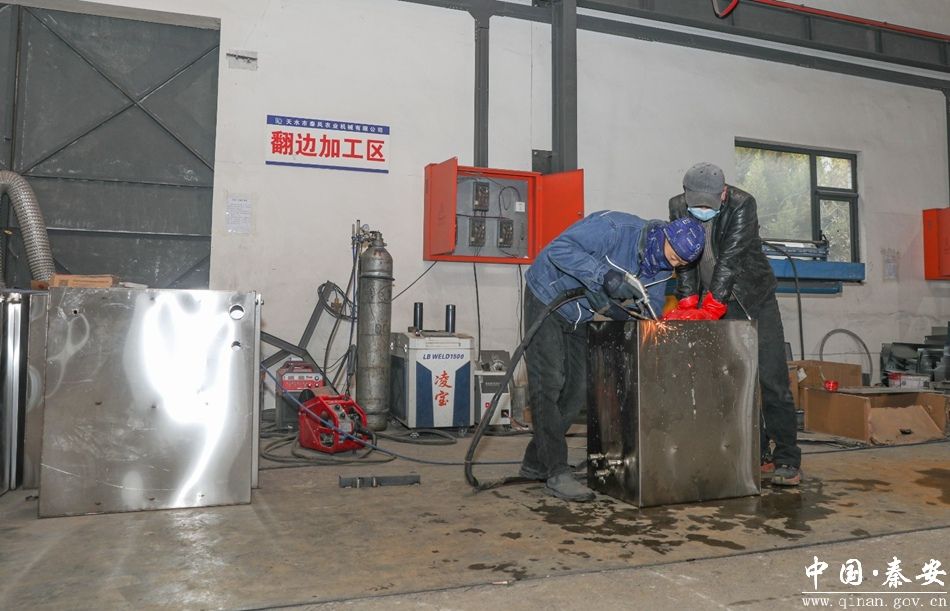 (秦风农业机械有限公司生产车间工人现场作业)