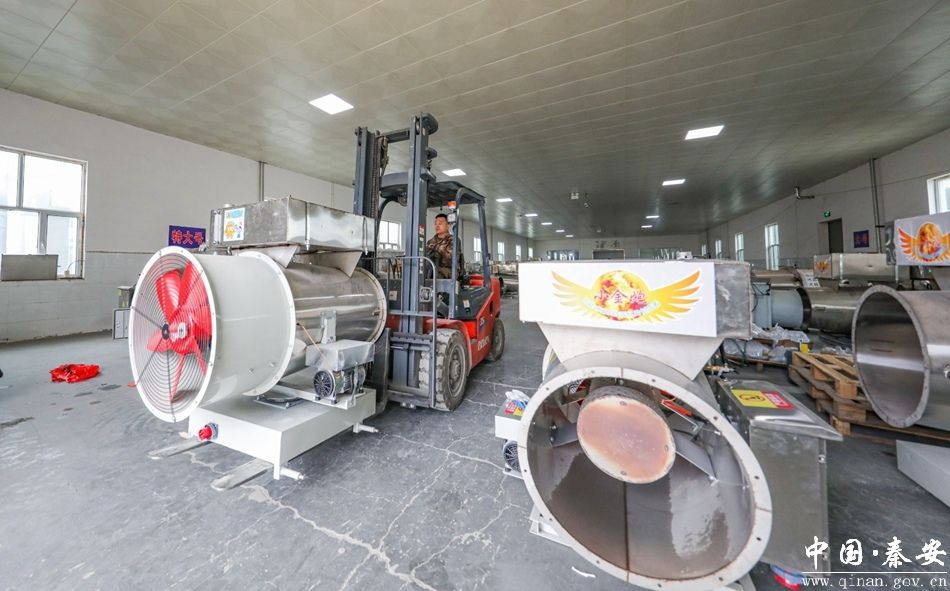 (秦风农业机械有限公司生产车间生产的果园防霜机)