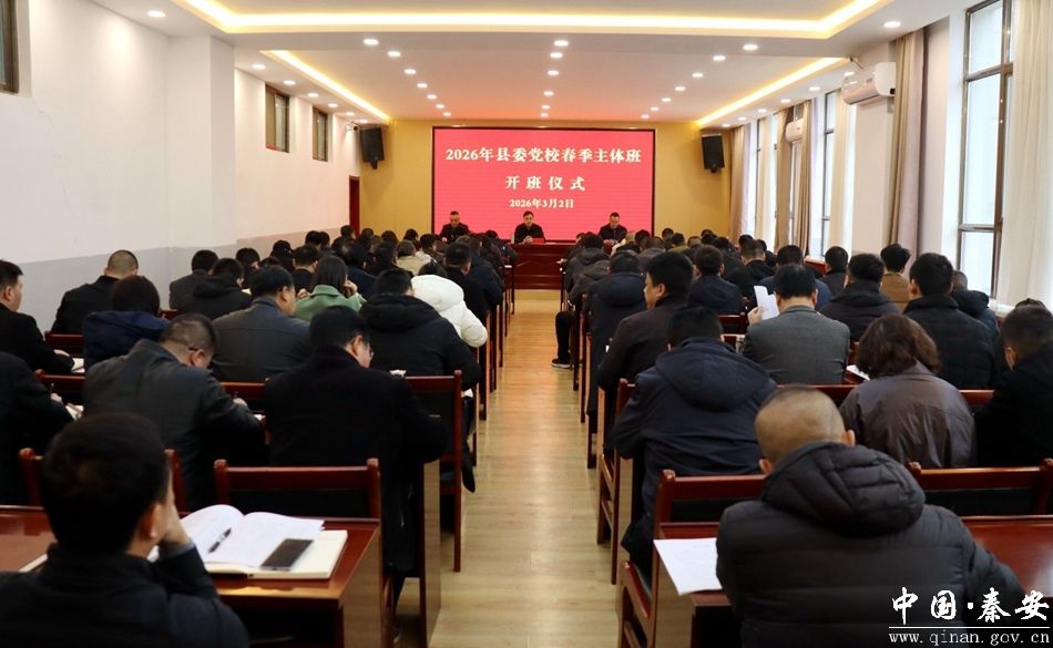 3月2日,秦安县委党校2026年春季学期主体班开班。县委副书记、党校校长张俊义出席开班仪式,并以《植根人民谋发展、胸怀大局谱新篇,在县域高质量发展实践中树立和践行正确政绩观》为题,进行了专题授课。县委组织部、县委党校有关负责同志,科级干部进修班、新任科级干部培训班参训学员等共计90余人参加开班仪式。