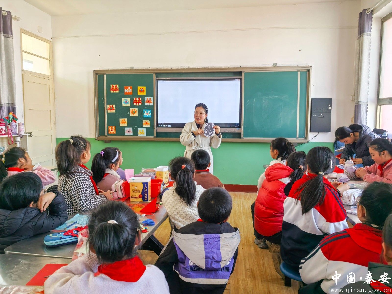 作为剪纸传承人,安梅霞始终秉持着“传艺、传心、传情”的理念,让剪纸技艺走出深闺、走进大众。2015年,她毅然辞去稳定的幼师工作,创办剪纸艺术工作室,搭建起集创作、培训、销售于一体的非遗传承平台,还牵头成立巾帼扶贫车间,带动当地妇女学习剪纸技艺,让传统手艺成为增收致富的门路,用巾帼力量助力乡村振兴。与此同时,她受聘于秦安县多所学校,每周走进课堂,为孩子们讲授剪纸历史与技法,用趣味教学点燃青少年的非遗热情,让古老技艺在代代相传中焕发新生。
