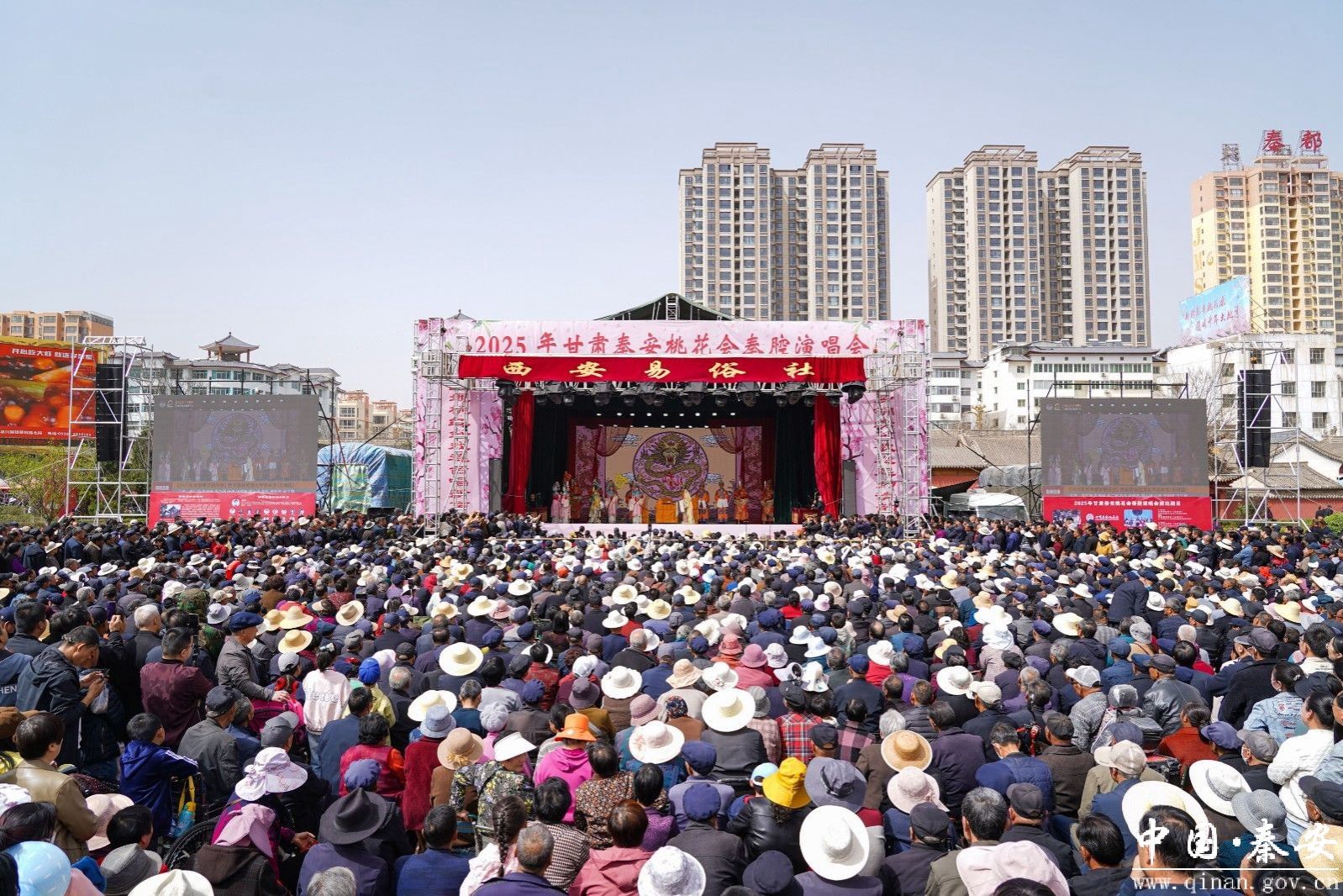 “文化寻根·桃坞新语”板块聚焦秦安深厚的历史文化底蕴与艺术表达,推出8项活动。其中“李杜光芒·诗意天水”文化活动率先启幕,同步开展的“桃花灼灼·翩舞秦安”天水市非遗节目展演,让古老非遗技艺焕发生机;文化馆内,“醉美桃乡·翰墨秦安”书画作品展、“梦回桃源·五彩秦安”书画春季文体系列活动,以笔墨丹青描绘桃乡盛景;“文康造福·厚土秦安”全国群众文化品牌创新小院签约暨定点帮扶工作座谈会,将签订合作协议与农特产品采购协议,深化帮扶成果;“相约桃乡·寻梦秦安”文艺采风活动通过诗文、书画、镜头记录桃乡美景;戏曲爱好者尤为关注的“秦风古韵·唱响秦安”秦腔演唱会(4月4日—8日)与“梨园雅韵·春满秦安”秦腔演唱会(4月9日—10日)将分别在兴国文化广场、秦安大剧院上演,传统戏韵与万亩桃花相映成趣,让市民沉浸式感受非遗魅力。