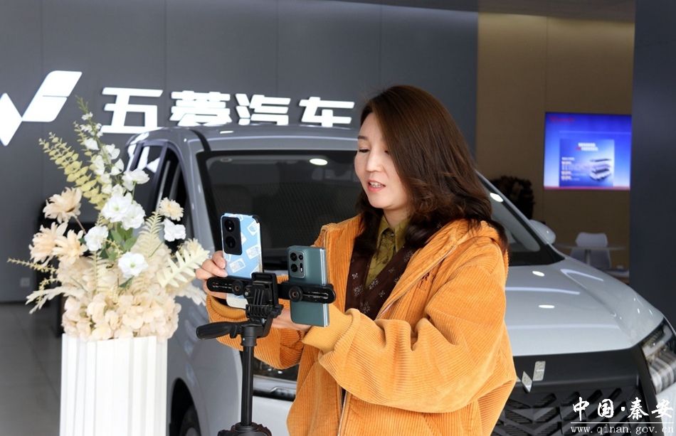 在秦安华世汽贸展厅内,主播正对着宏光MINI、缤果、星光等热销车型,全方位展示产品亮点与实时优惠,门店工作人员同步配合,一边在线下为围拢的市民提供咨询服务,一边协助主播实时解答网友关于补贴政策、申领流程的问题,线上线下联动,让政策红利通过直播精准触达千家万户。