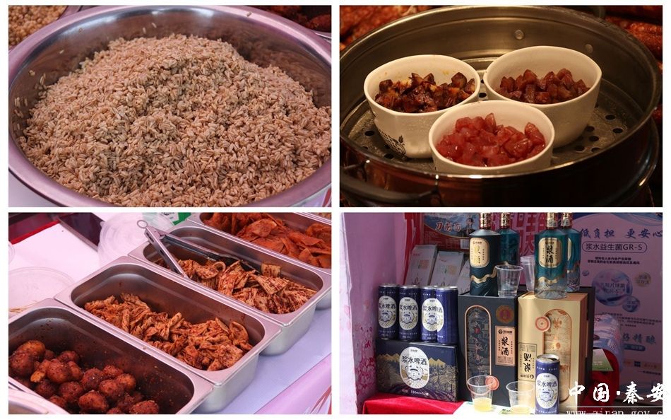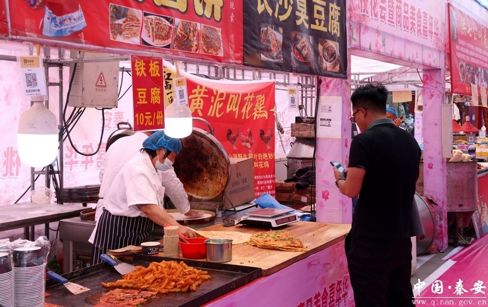 步入展销会现场,香气氤氲、人头攒动,近百个展位整齐排布,秦安小吃、酸辣粉、烤肉、臭豆腐等特色美食香气扑鼻,各类日用百货、潮流服饰、新款鞋子、精致配饰琳琅满目,吸引了众多市民驻足挑选、品尝、购买。