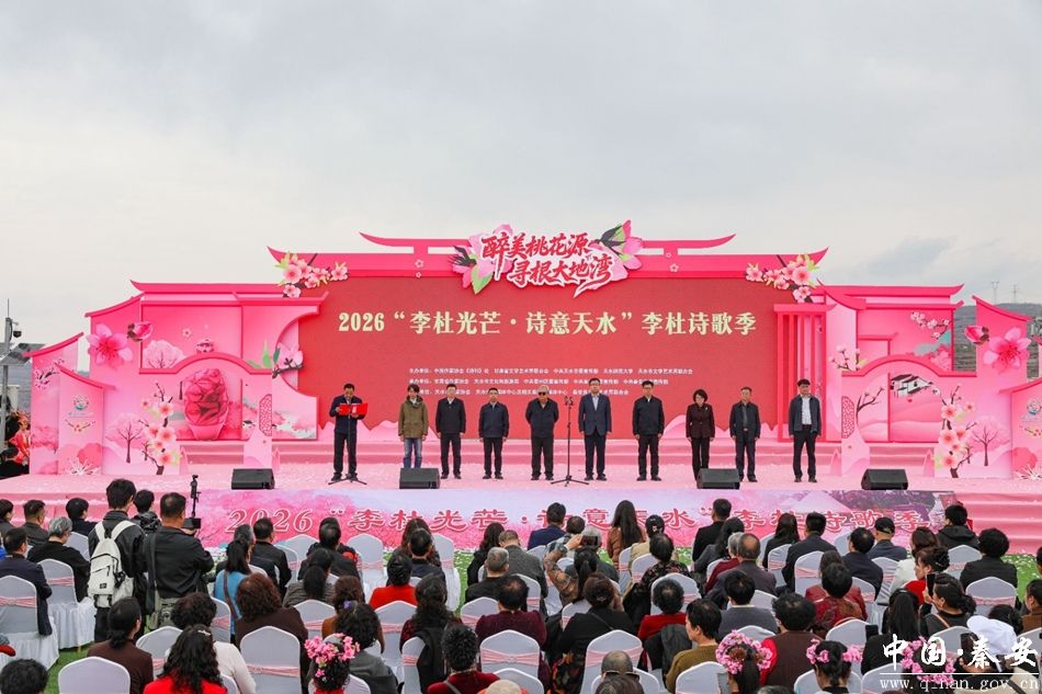 4月8日下午,2026“李杜光芒·诗意天水”李杜诗歌季启动仪式在秦安县刘坪镇秦洼桃花堡景区隆重举行。著名诗人、中国作家协会诗歌委员会主任、中国作家协会原副主席吉狄马加,甘肃省文联党组成员、副主席王正茂,市委常委、宣传部部长王文东,市人大常委会副主任张思佳,市政协副主席焦继军,县委常委、宣传部部长陈升,以及全国知名作家、诗人、学者等参加启动仪式。