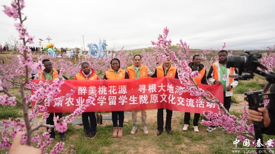 更令人欣喜的是,此次桃花会还吸引了国际友人远道而来。来自土耳其的国际友人柯瑞第一次来到秦安,看到万亩桃花盛开的壮观景象,直呼“特别震撼”。甘肃农业大学的国际体验官们走进秦安,穿行在桃林间的小路上,梯田上的桃花沿着山势层层铺开,粉白相间的花海与黄土高原的沟壑梁峁温柔交织,令他们赞叹不已。