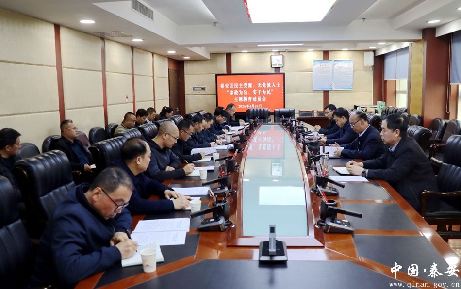 4月21日,秦安县民主党派、无党派人士“参政为公、实干为民”主题教育动员会召开。县委副书记、统战部部长张俊义出席会议并讲话。县领导王建锋、张具虎、陈存录,民盟秦安县委班子成员、无党派人士代表、县委统战部机关干部参加会议。