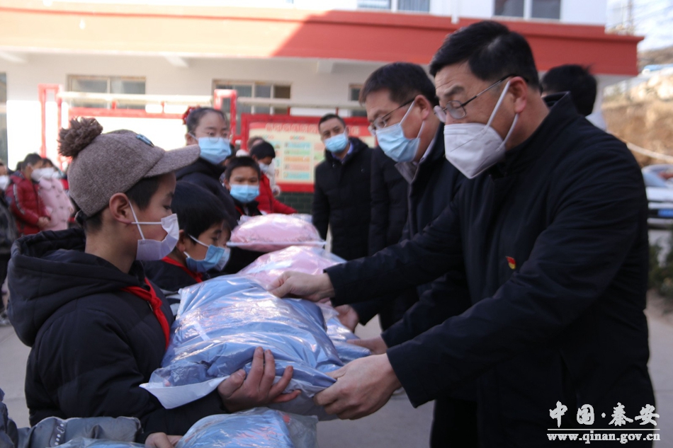 12月14日,天津市津南区援教团来到秦安县王窑学区为学区品学兼优的24名学生送去御寒棉服,帮助他们温暖过冬。