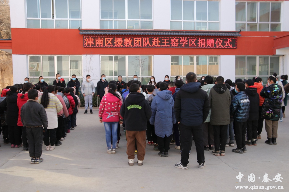 捐赠仪式上,天津市津南区援教团负责人鼓励学生们要立志高远,努力学习,长大后为建设祖国、建设家乡贡献力量。王窑学区负责人作了感谢词。