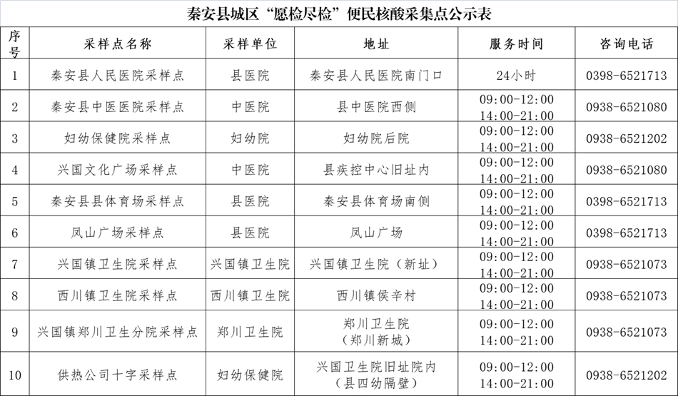 秦安县城区“愿检尽检”便民核酸采样点