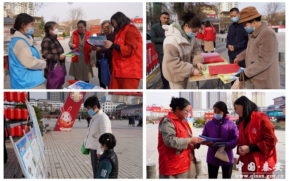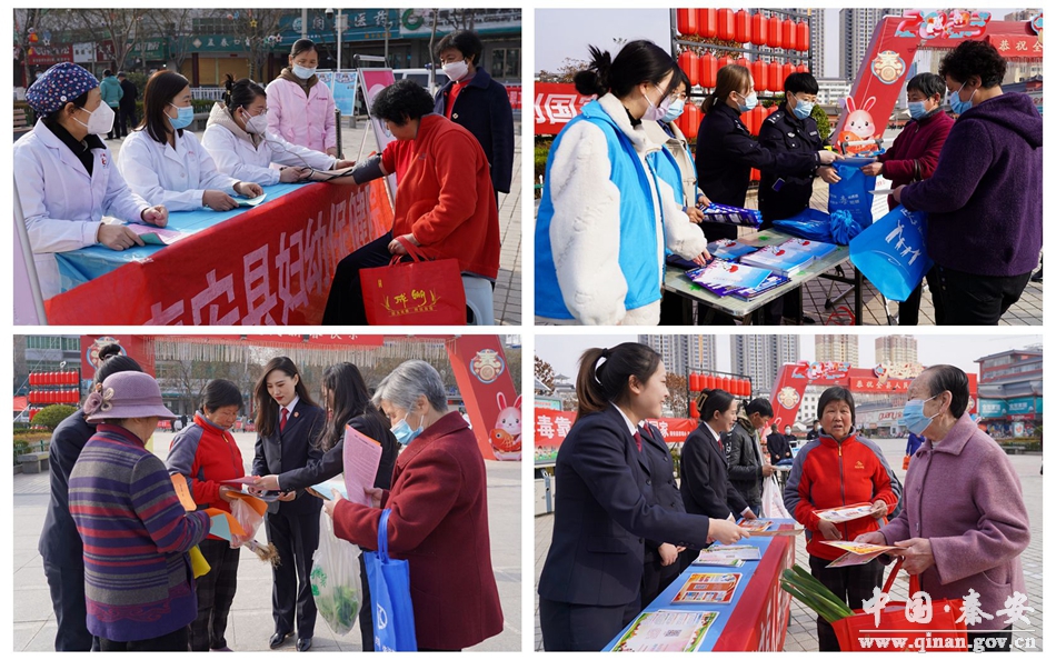 活动现场,各部门工作人员通过设立法律咨询点、悬挂宣传横幅、发放宣传资料等形式,向过往行人宣传《民法典》《反家庭暴力法》《妇女权益保障法》《未成年人保护法》等法律法规,耐心解答群众咨询的有关法律问题。同时,秦安县妇幼保健院还组织医务人员到活动现场免费为广大群众进行义诊活动。