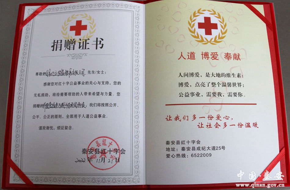 11月21日,甘肃亿立佳盛能源有限公司向秦安县红十字会捐赠价值约14万元的防疫物资。秦安县委常委、常务副县长张俊义及县直相关部门、红十字会负责人参加捐赠仪式。