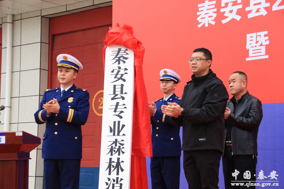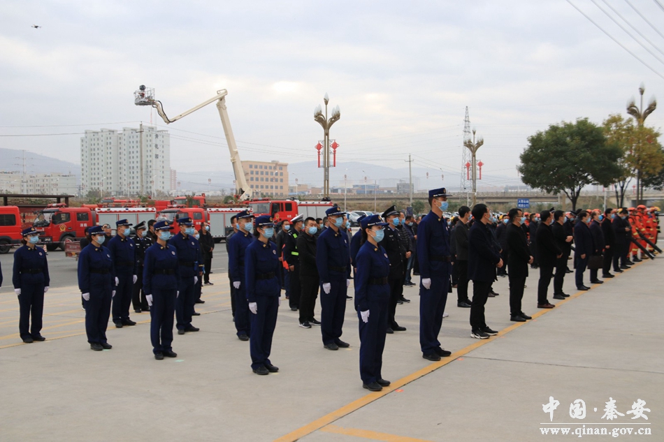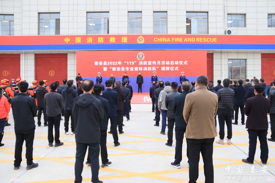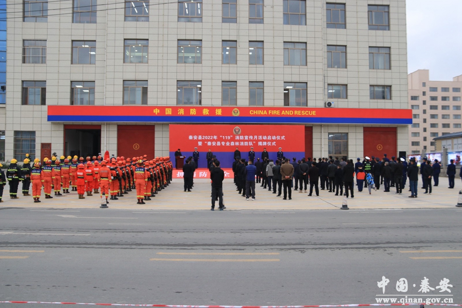 在第31个全国“119”消防宣传日来临之际,为广泛宣传普及消防知识,切实增强全民消防安全意识,全面提升全县消防救援能力,11月9日,秦安县举行了“119”消防宣传月启动暨“秦安县专业森林消防队”揭牌仪式,县委副书记、县长王龙强,市消防救援支队政治部主任张晓斌,县委常委、常务副县长张俊义,县委常委、政法委书记庞胜前及县消防安全委员会主要负责人,各镇分管负责人,驻秦单位、受表彰集体和个人代表参加活动。