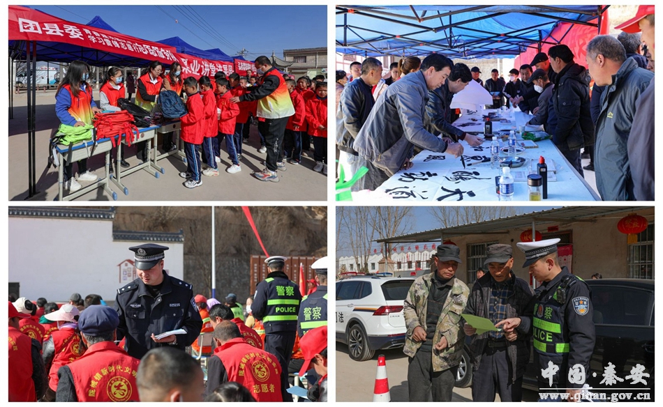活动现场,县委党校组织理论宣讲志愿者开展党的二十大精神宣讲;网信办向广大村民开展了网络安全知识及文明上网等宣传;县科技局、乡村振兴局、公安局、红十字会等单位在现场设立政策咨询服务点,为广大群众提供科普宣传、惠农政策、应急救护、禁毒及交通安全等服务;医务人员则耐心为每一位居民进行血压、血糖测量,向群众“送医送诊”,并对他们进行健康宣教及治疗指导;团县委为学生们捐赠了书包、玩具等爱心物资;县文化馆组织“文艺轻骑兵”开展惠民演出;县农村电影公益放映工作站还开展了农村公益电影放映活动,为村民们送上了一场视听盛宴。