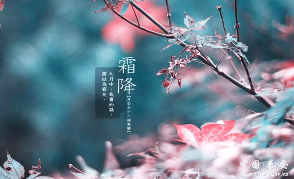 《月令七十二候集解》关于霜降说:“九月中,气肃而凝,露结为霜矣”。此时,中国黄河流域已出现白霜,千里沃野上,一片银色冰晶熠熠闪光,树叶枯黄,片片凋落。