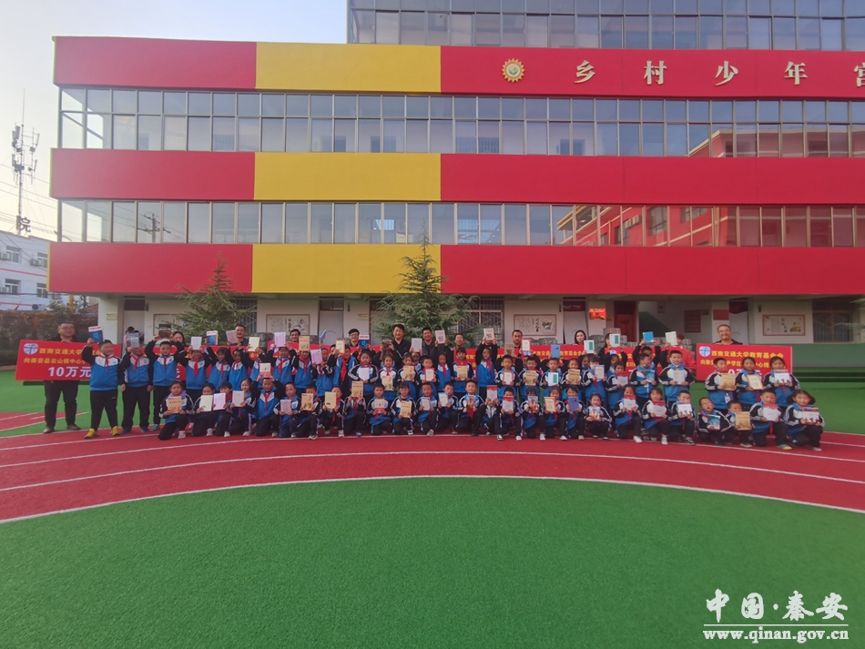 10月20日,西南交通大学教育基金会向秦安县王尹中心小学、王尹中心幼儿园、西川中心幼儿园、云山中心小学、千户中学、千户中心小学、缑湾中学和王湾中学捐赠了价值共计105万元的图书。图书发放仪式在王尹镇中心小学举行。西南交大驻王尹镇胡坪村第一书记、受捐赠学校负责人及王尹镇中心小学师生代表参加了捐赠仪式。