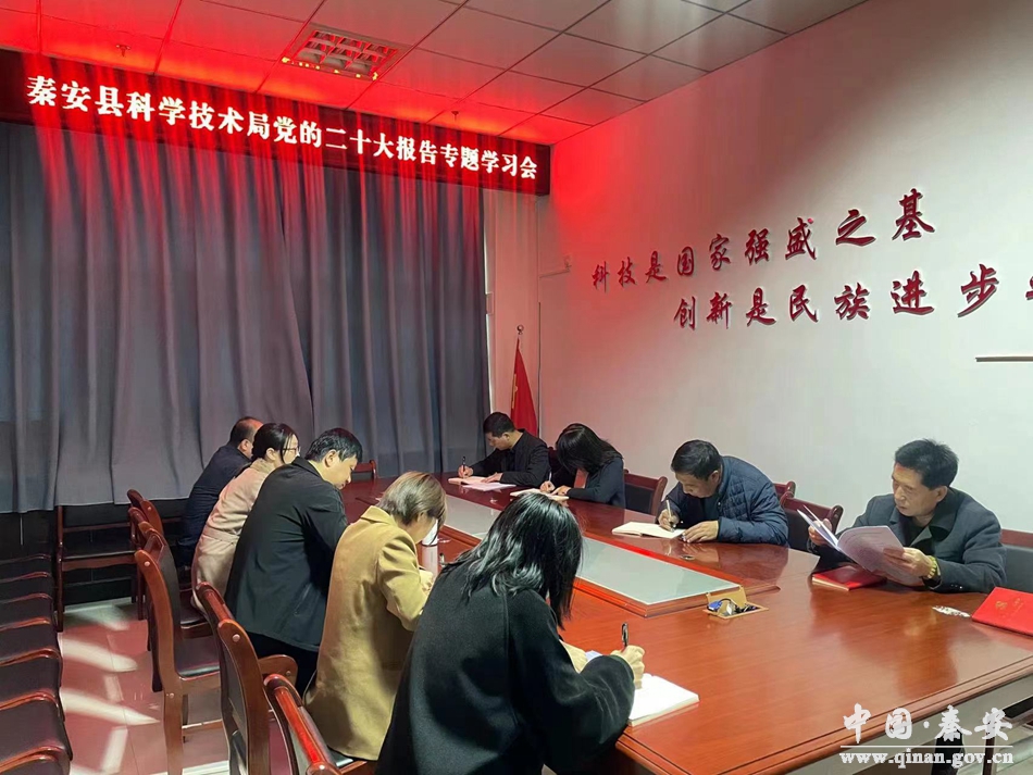 为认真学习、深刻领会、准确把握党的二十大报告的精神实质和丰富内涵,切实把思想和行动统一到党的二十大精神上来,10月19日,秦安县科技局组织全体干部职工召开党的二十大报告专题学习会。