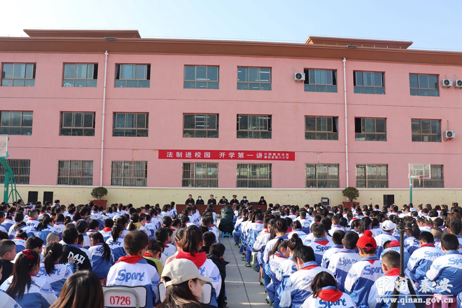 2月23日,秦安县第六小学举行“法制进校园 开学第一讲”主题教育活动。本次活动学校邀请到秦南派出所和兴国镇司法所为全校师生开展法治教育专题讲座。校领导班子成员及师生共计1400余人参加了活动。