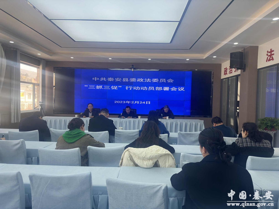 2月24日,秦安县委政法委召开“三抓三促”行动动员部署会议,教育引导全体干部强化学习践初心、聚焦主业抓落实、为民服务促发展,以更优作风、更强担当、更大作为奋力推动秦安政法工作现代化,服务保障全县经济社会高质量发展。 会议强调,开展“三抓三促”行动是贯彻落实党的二十大精神和习近平总书记重要指示批示精神及省市县委决策部署的重大举措,也是贯彻落实中央和省、市委政法工作会议关于“铸忠诚警魂”活动的具体实践。县委政法委机关全体干部要提高政治站位,自觉做“三抓三促”行动的参与者、实践者、推动者,用政法人的“辛苦指数”换取老百姓的“满意指数”、企业家的“信心指数”和全社会的“平安指数”。