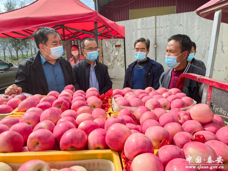 在安伏镇沟门村,杨喜春与当地果农亲切交谈,详细了解了他们的苹果种植面积、产量和当前销售情况。杨喜春强调,在县委、县政府的引导和支持下,苹果已经成了秦安群众增收致富的重要产业,眼下正是苹果采摘销售的关键时期,安伏镇要做好协调沟通,保证防疫工作和苹果销售“两不误”,确保群众收益不缩减,果品不滞销。