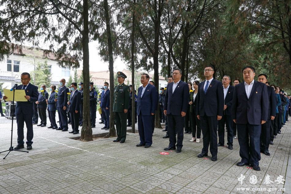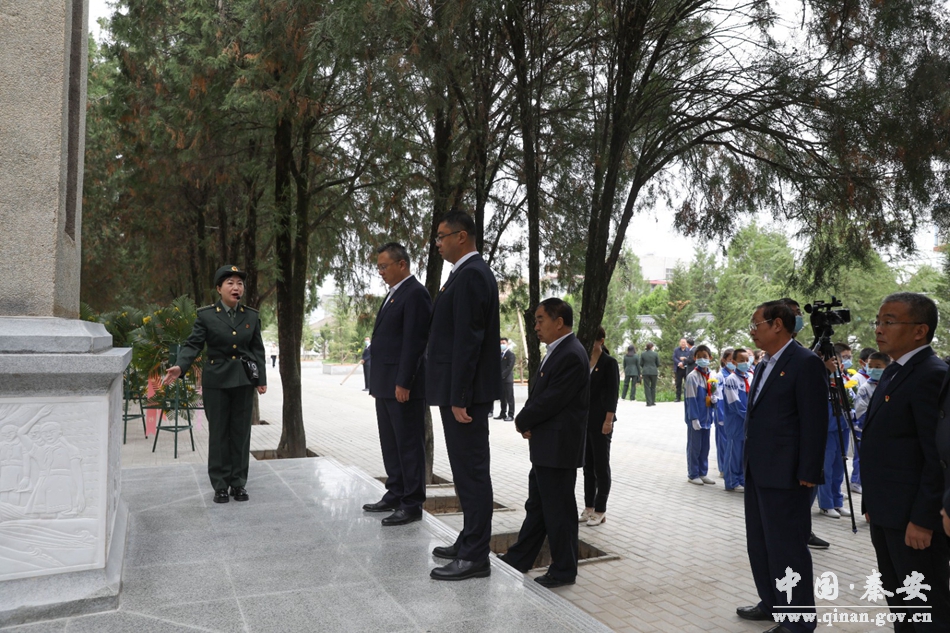 9月30日,秦安县在县烈士陵园举行烈士纪念日公祭活动。县委书记周济,县委副书记、县长王龙强,县人大常委会主任李宽余,县政协主席杨喜春等县四大组织在家领导,法检两长,英模人物、残疾军人先进代表,县直各部门主要负责人,驻秦部队及单位和城区学校少先队员代表参加活动,向为民族解放、国家富强和人民幸福而献身的革命先烈致以崇高的敬意和深切的怀念。