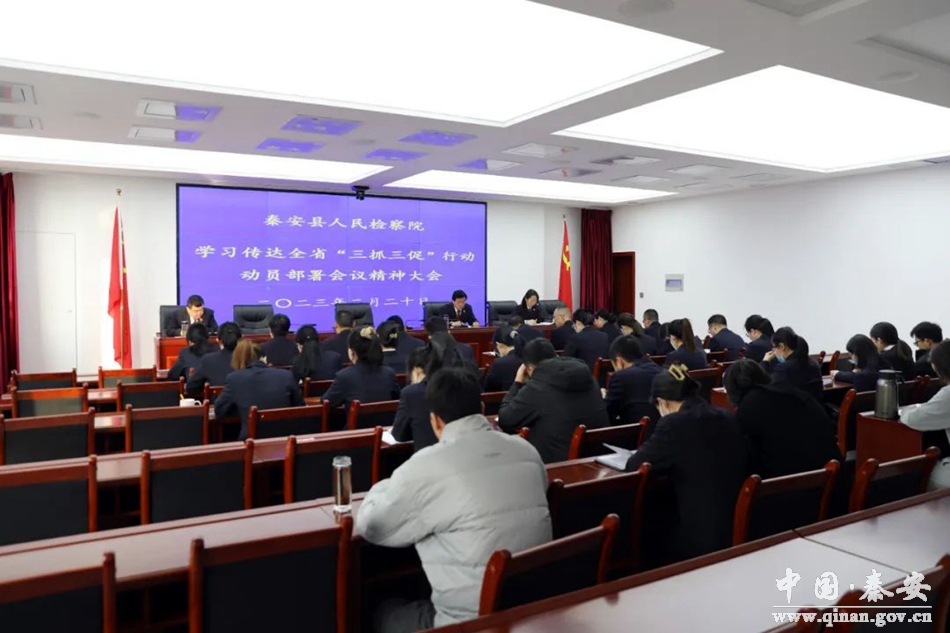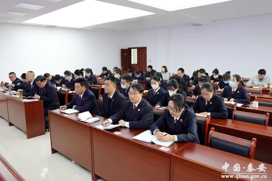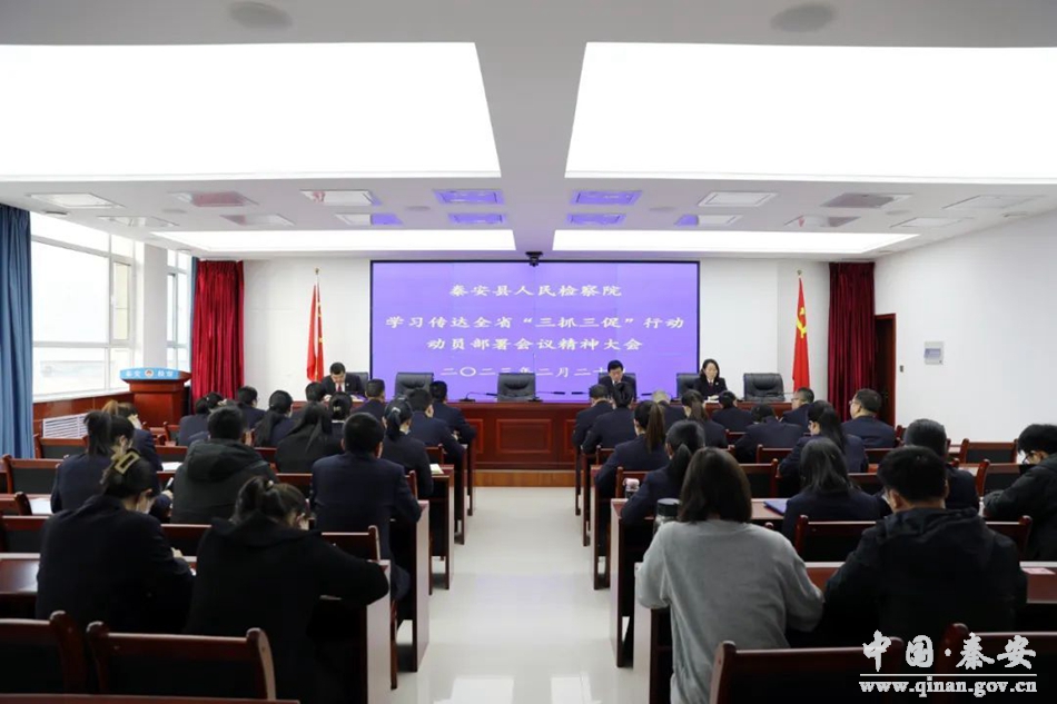 2月20日,秦安县检察院召开全院干警大会,传达学习贯彻全省“三抓三促”行动动员部署会议精神,全体干警参加会议。