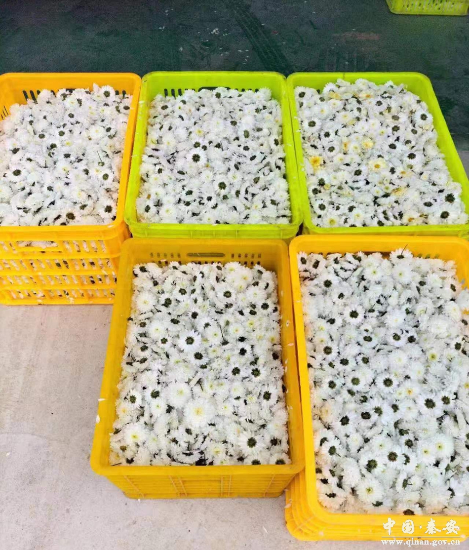 近期,五营镇龙头山七月菊进入采摘期。洁白的菊花在翠绿的叶子衬托下,显得十分夺目。村民们穿梭其中,或采摘菊花、或来回搬运,一派繁忙的丰收景象。