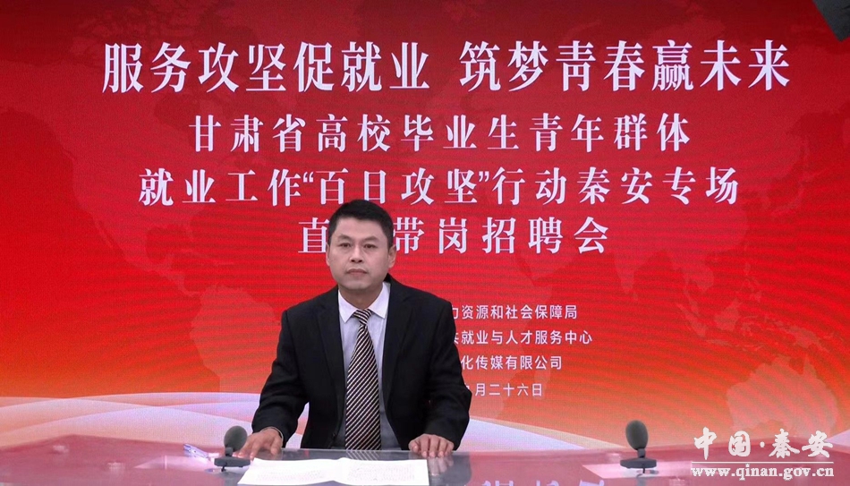 为进一步做好疫情期间公共就业服务,千方百计促进以高校毕业生为重点的各类青年群体更充分、高质量就业,开拓更多就业岗位和就业机会,秦安县人社局主办,秦安县融媒体中心、秦安县公共就业与人才服务中心、甘肃秦融文化传媒有限公司承办的甘肃省“百日攻坚行动”百名人社局长直播带岗暖心行动秦安专场线上招聘活动于9月26日下午15:30在县电视台演播大厅举办,五彩秦安APP、五彩秦安快手号、五彩秦安抖音号、秦安融媒视频号、秦安人社视频号同步直播。