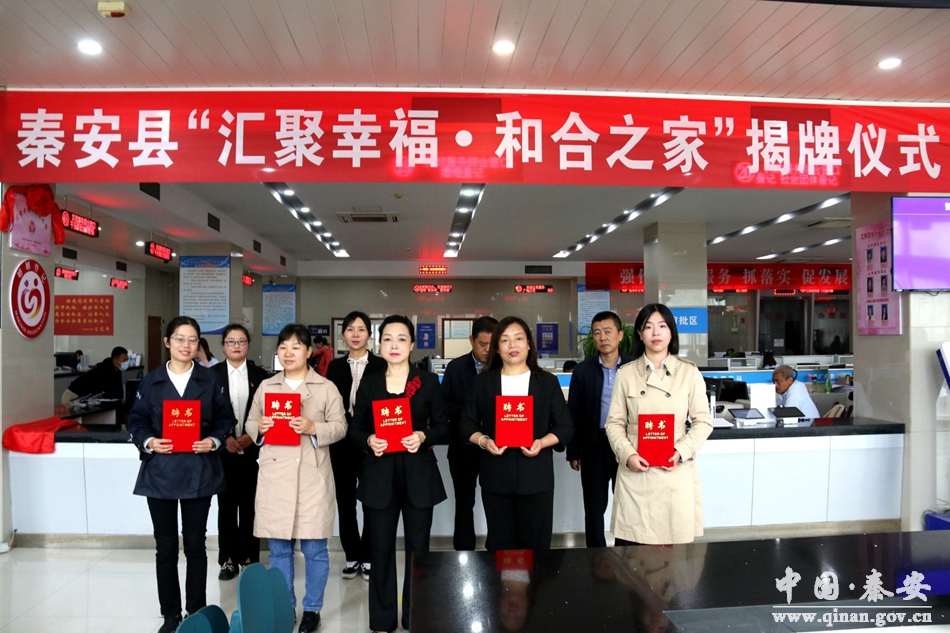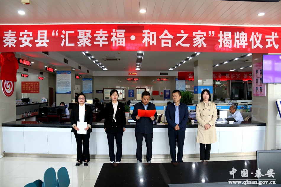 为进一步健全完善婚姻家庭纠纷预防化解机制,推动构建联动关爱保护妇女儿童工作体系,促进社会和谐稳定。9月23日,秦安县举行“汇聚幸福·和合之家”揭牌仪式。县民政局、县妇联、政务服务中心负责人、心理疏导志愿者、法律服务志愿者、婚姻家庭调解志愿者、两对新人共计20余人参加活动。