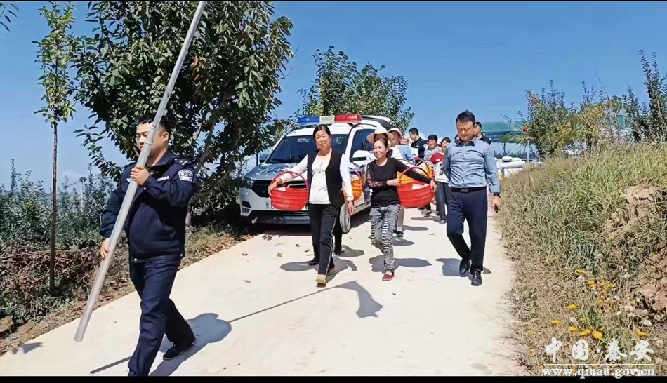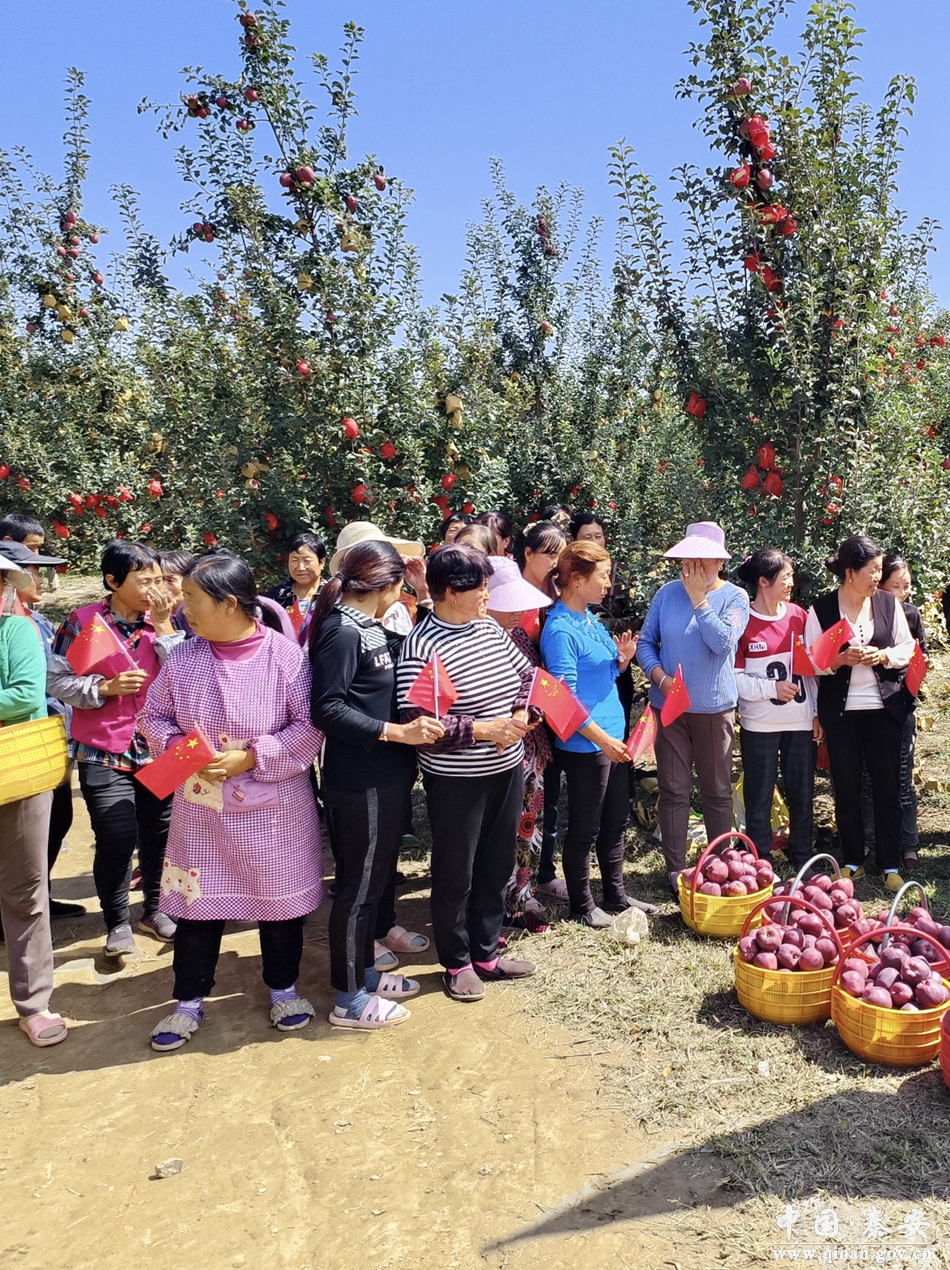 在种植基地,一颗颗红红的苹果挂满枝头、随风摇曳。志愿者与农民群众奋战在抢收第一线,有的拿起篮子采摘、有的忙着搬运、装筐,甚是热闹。红红的苹果和村民的笑脸交相辉映,呈现出一幅美丽的乡村丰收图画。