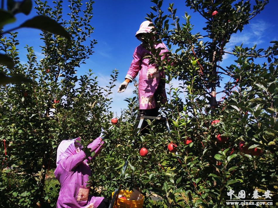 近年来,秦安县坚持把苹果产业作为农业首位产业常抓不懈,按照“稳面积、强质量、强品牌、强效益”的思路,加快“产、贮、加、销”全产业链协同发展。利用苹果上市的时间差,发展早中熟苹果错峰上市,抢占市场,加大对果农的政策和技术扶持力度,引导果农在晚熟苹果园内种植部分早熟苹果,提高整体果品质量,延长了苹果销售周期,补充了传统晚熟苹果的销售空档,为果农带来了可持续的收益。