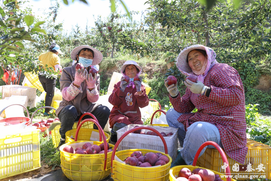 走进秦安县闫家沟农业专业合作社苹果种植基地,一颗颗红彤彤的花牛苹果缀满枝头,色泽红润饱满,果香沁人心脾,工人们正在有序进行采摘。采摘后的苹果统一送到仓库,工人们经过分级挑拣、套网装箱、过秤封口,把这些新鲜清脆的苹果入库贮藏,等待客商前来收购。