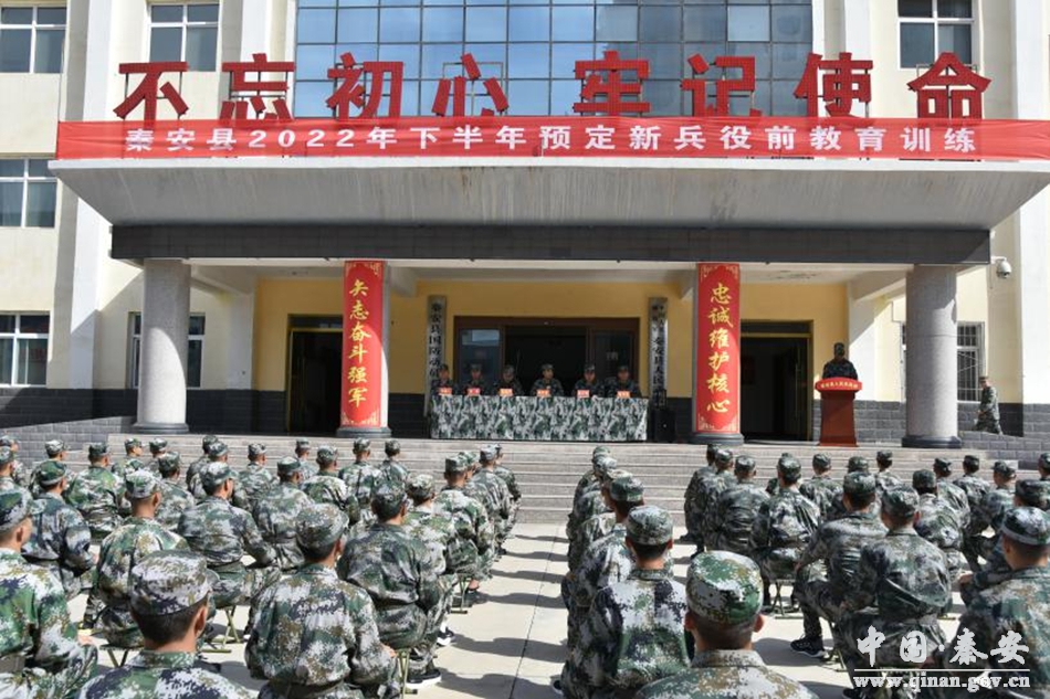 9月7日,2022年秦安县下半年新兵役前教育训练动员大会拉开帷幕。县征办组织体检、政考“双合格”预定新兵,开展为期一周的役前教育训练,让他们提前体验军营生活、感受军营氛围、掌握基本的军事知识和技能、提高自我管理能力和适应能力,进一步端正入伍动机、打牢当兵服役基础,在迈入军旅之前系好“第一粒扣子”。