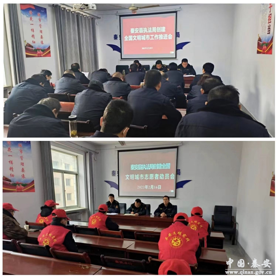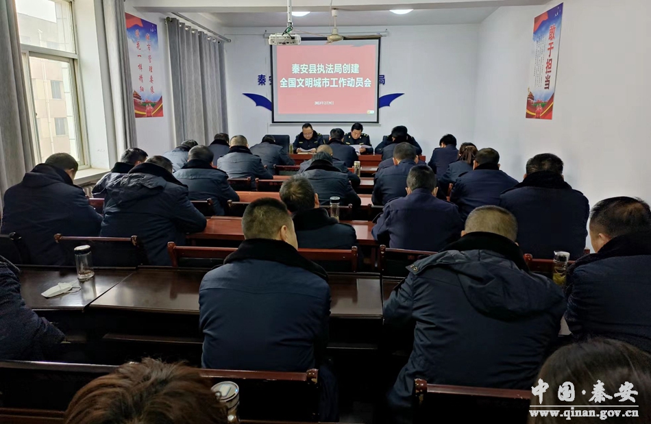 县执法局组织召开全国文明城市创建工作动员会,传达秦安县全国文明城市创建工作动员大会精神和相关文件精神,动员全局上下迅速行动,以饱满的热情、临战的状态、扎实的作风开展创城工作,为创建全国文明城市奠定坚实基础。并在召开的全国文明城市创建工作推进会上,对创建工作进行再动员、再宣传、再安排、再深化,进一步明确目标责任,狠抓工作落实。同时,组织公益性岗位人员召开了创城工作动员会,动员公益性岗位人员和志愿者积极开展城市“牛皮癣”清理行动,擦亮秦安的城市形象之窗。