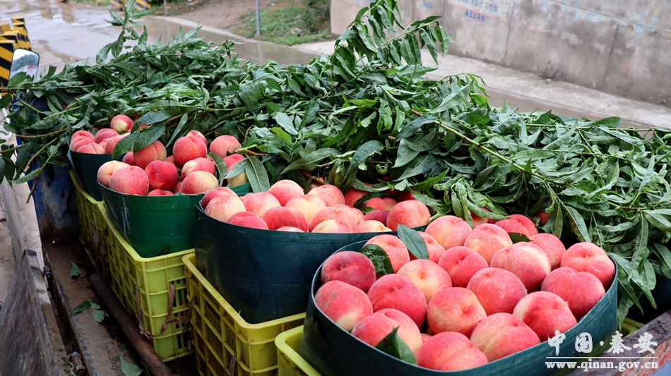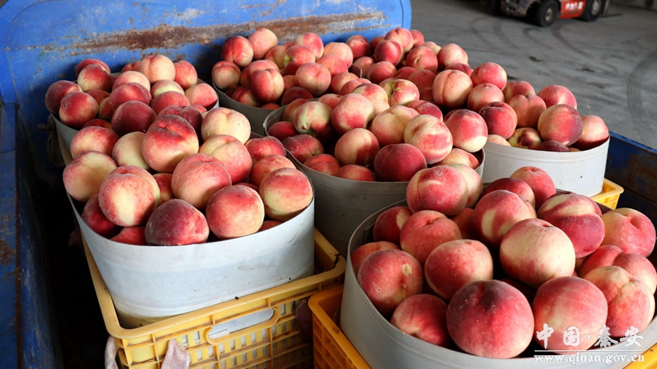 眼下,正是晚熟蜜桃陆续上市的季节,在秦安县西川镇王峡村天水勤丰果业有限责任公司蜜桃收购点,记者看到,不时有果农开着三轮车前来交售桃子,一个个光泽艳丽、果形端正的蜜桃让人垂涎欲滴。在收购摊点上,工人们也正忙着将果农采摘好的蜜桃称重、分级、装箱、外运。
