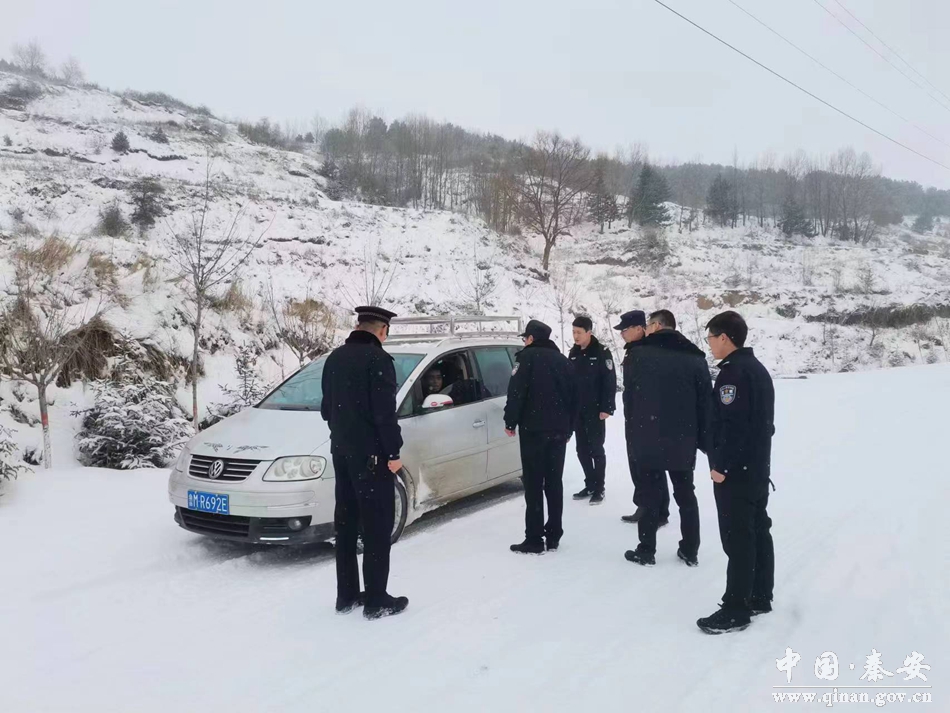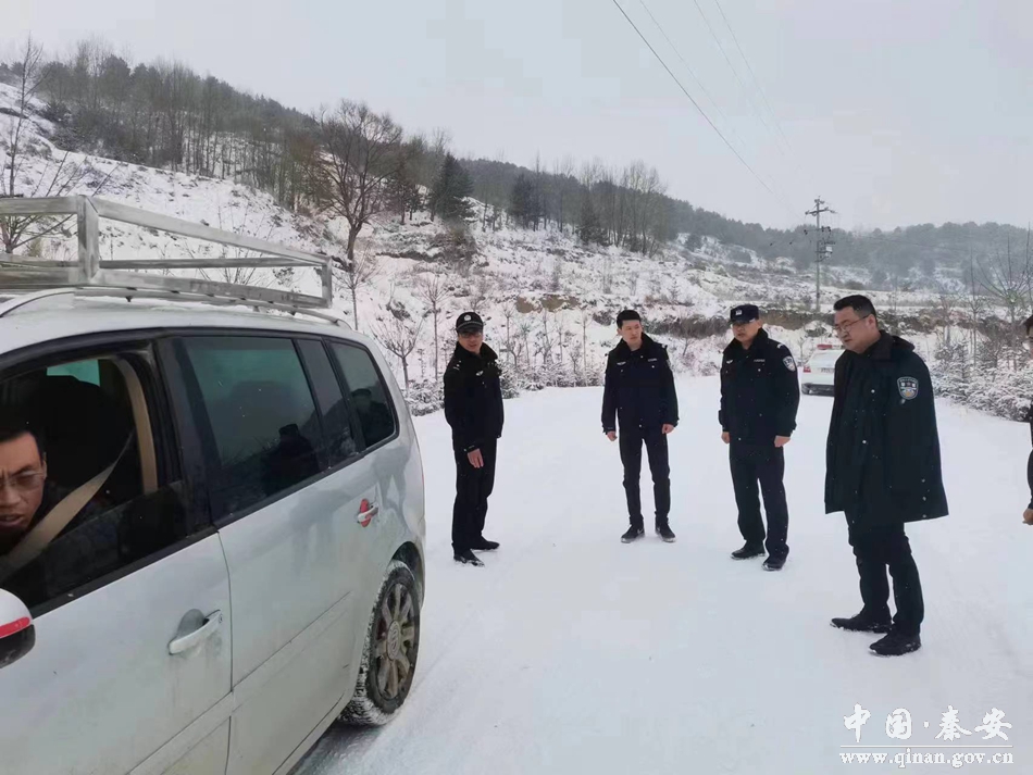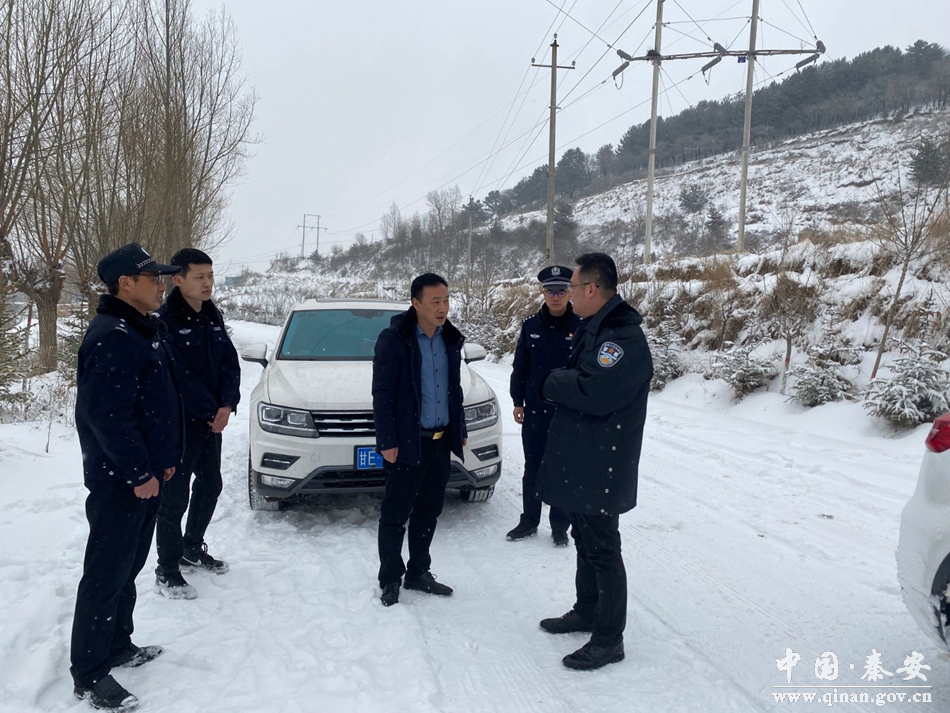 2月13日,秦安县政府副县长、县道交委主任、县公安局党委书记、局长薛天胜到中山镇蔡四路沿线调研指导雪天道路交通安全工作。