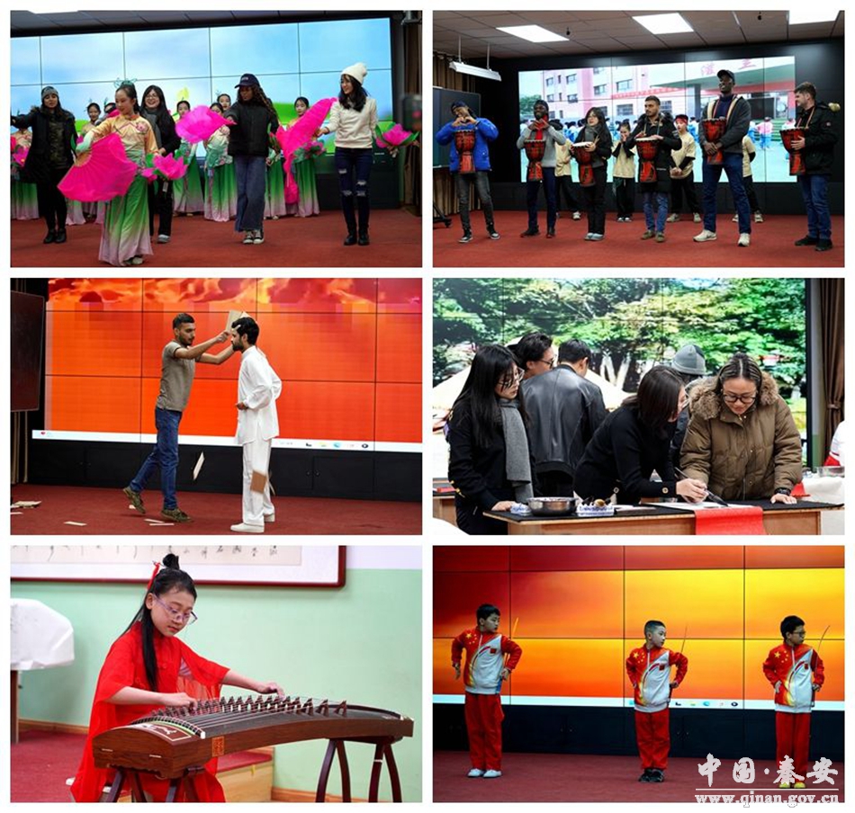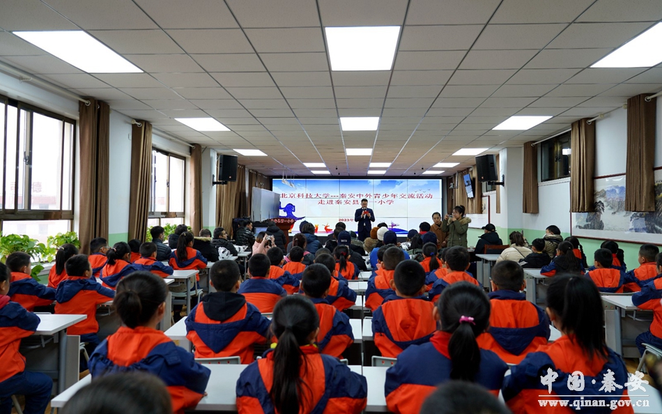 2月13日,北京科技大学国际学生到秦安县第一小学开展交流活动。来自非洲、北美洲、南美洲等12个国家的16名国际学生与第一小学师生们亲密互动交流。