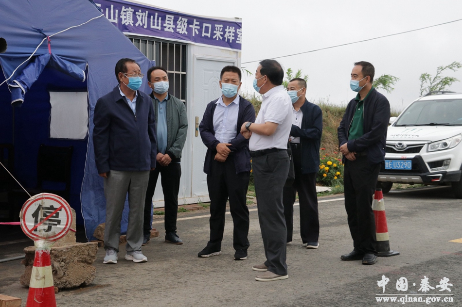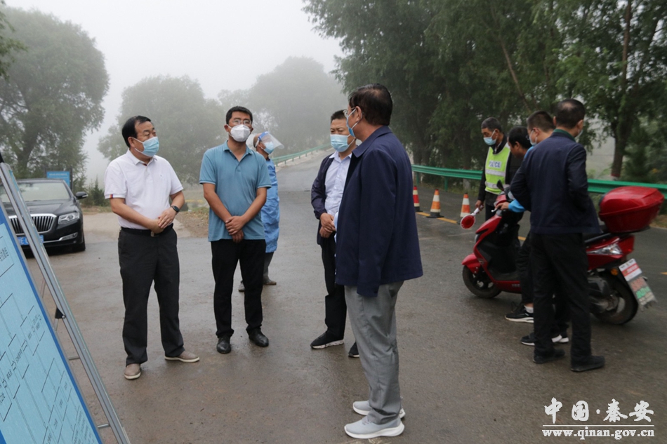 为进一步强化党建引领全面落实网格化疫情防控工作,8月22日,秦安县人大常委会主任李宽余到云山镇督查县级卡口及重点卡口疫情防控工作,县人大常委会副主任李永忠一同督查。