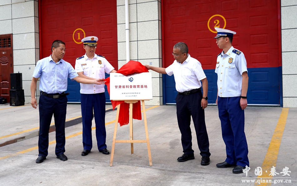 揭牌仪式上,市科协普及部负责人宣读了《关于命名2022——2026年度甘肃省科普教育基地的通知》(甘科协发﹝2022﹞34号);县消防大队负责人介绍了争创省级科普教育基地情况;牛小强、刘暾炜、姚建国共同为秦安县消防救援大队“省级科普教育基地”揭牌。