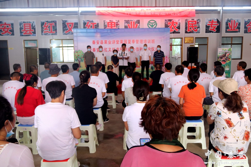 为进一步提高果农整体素质,培养造就有文化、懂技术、会经营的新型果农,8月8日,秦安县在莲花镇冯沟村举办了果业讲堂果园夏季管理培训班暨秦安县红又红农民专业合作社开业仪式。县农业局、科技局、果业局、莲花镇政府等单位负责人,新润农业、绿叶合作社等企业负责人及莲花镇冯沟村培训学员参加活动。