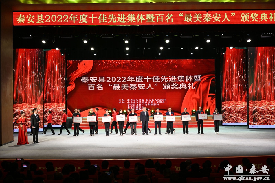 榜样力量鼓舞人心,先进典型引领风尚。2月5日,秦安县2022年度十佳先进集体暨百名“最美秦安人”颁奖典礼在秦安大剧院隆重举行。秦安县委书记周济,县人大常委会主任马顺祥,县政协主席杨喜春等县领导参加典礼并为十佳先进集体和144位“最美秦安人”获奖者颁奖。