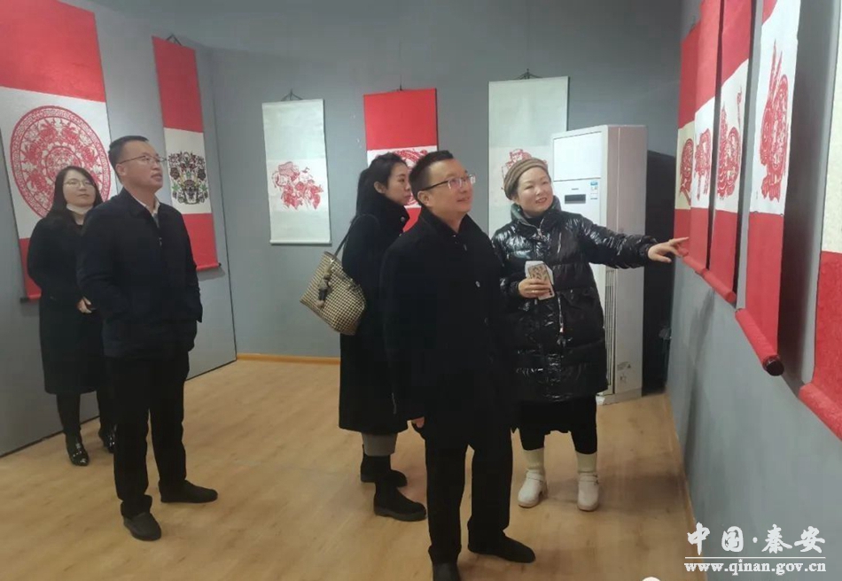 为弘扬民族优秀传统文化,营造春节期间欢乐、祥和的节日氛围。近日,由秦安县文体广电和旅游局主办,县文化馆承办的非遗过大年文化进万家“瑞兔纳福”秦安县新春剪纸艺术展在县美术馆开展。省非遗中心主任刘卫华,县领导李永忠、张涛涛、张具虎先后观看展览。