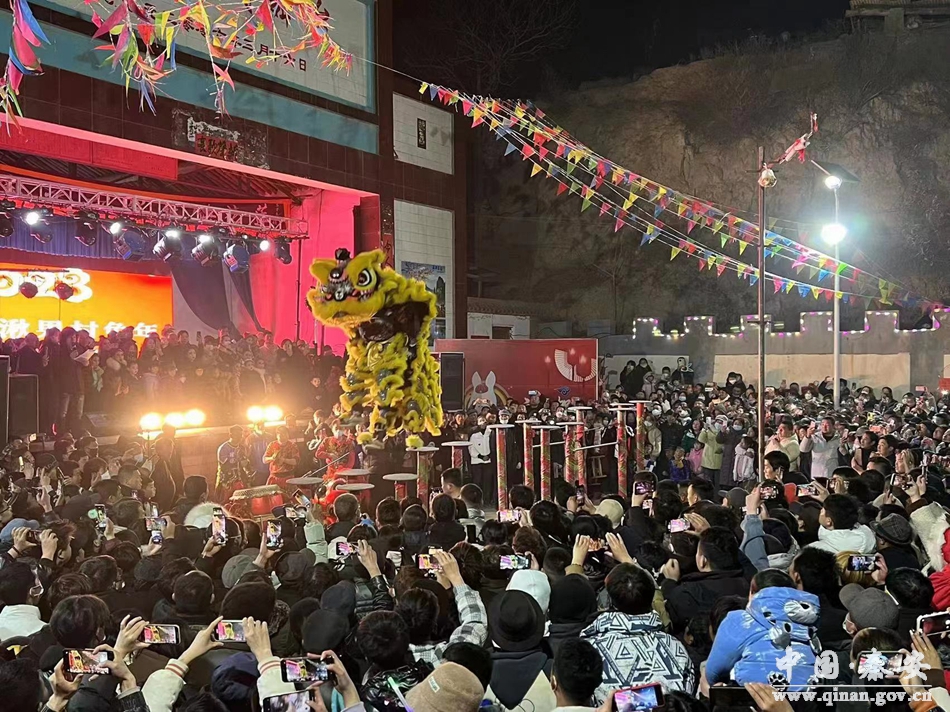 卯兔迎来中国年,欢声笑语连成片。2月2日,秦安县莲花镇湫果村文化广场上,人头攒动,锣鼓喧天,周边群众齐聚湫果村,观看文艺晚会和社火表演,共庆新春。