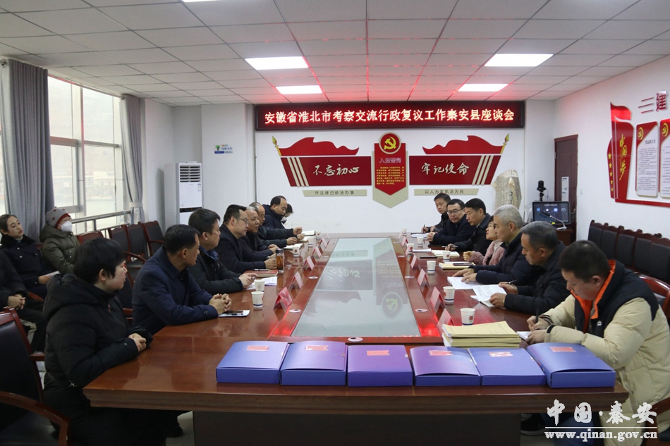 2月1日,安徽省淮北市司法局副局长贾俊峰一行来秦安县,就行政复议规范化建设工作进行考察交流。省司法厅行政复议与应诉综合处副处长魏麟懿,市司法局副局长韦世民,秦安县政府副县长薛天胜一同考察。