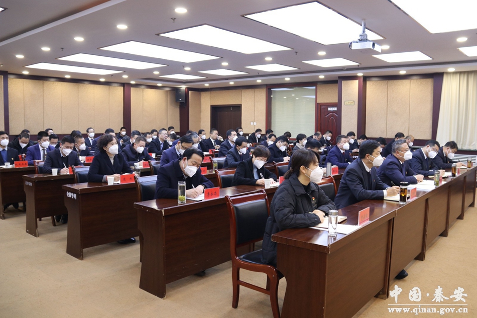 秦安县委书记周济,县委副书记、县长王龙强,县人大常委会主任马顺祥,县政协主席杨喜春等四大组织领导及法检两长、县直相关部门负责人、县纪委监委领导班子成员在秦安分会场收听收看视频会议。
