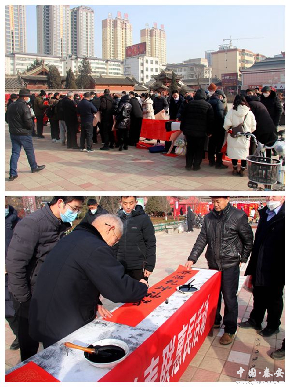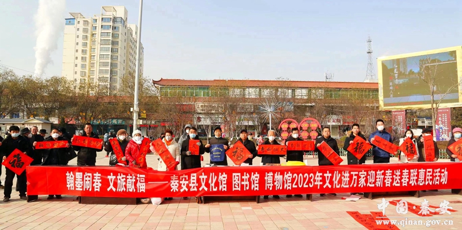 1月18日,“翰墨闹春 文旅献福——2023年文化进万家 迎新春送春联惠民活动”在秦安县兴国镇文化广场举行。此次活动由县文化馆 、县图书馆、 县博物馆联合举办。活动邀请了多名知名书法家现场挥毫泼墨,免费为广大市民游客书写春联,迎春送福,共贺新年。